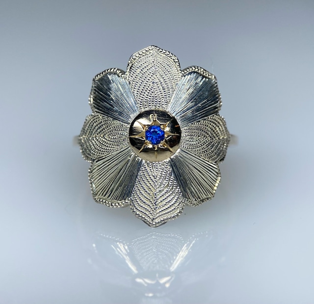 k10& silver 幻想花シリーズ アウイナイト 和彫り リング 一点もの