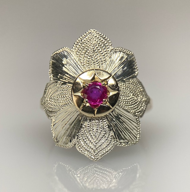k10& silver 幻想花シリーズ ルビー 和彫り リング 一点もの