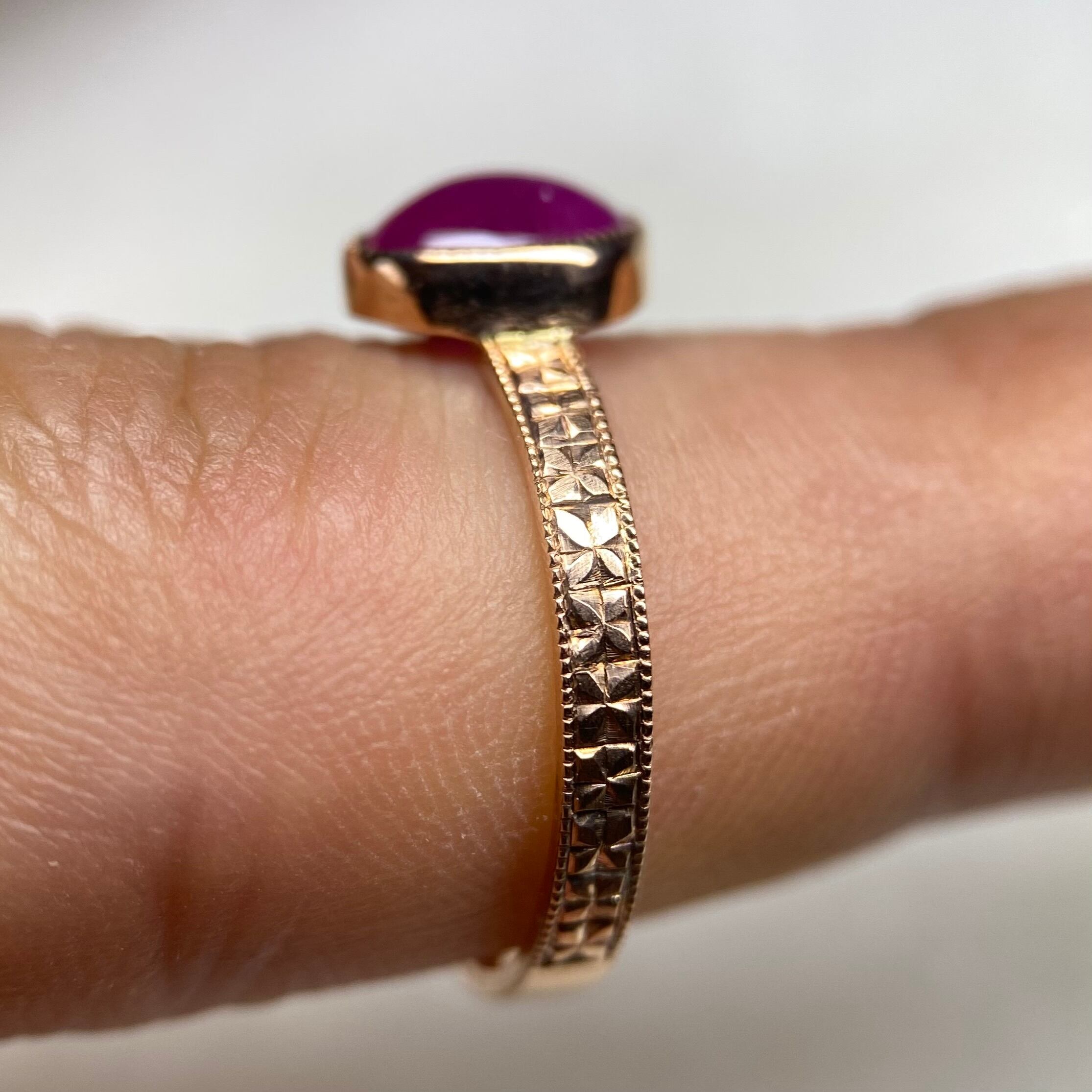 k10リング K10 イエローゴールド 一点もの キラキラ 彫り 和彫り ミル ミル打ち ピンキーリング 花びら 希少石 ルビー コランダム 天然石 赤 レッド 一点物
