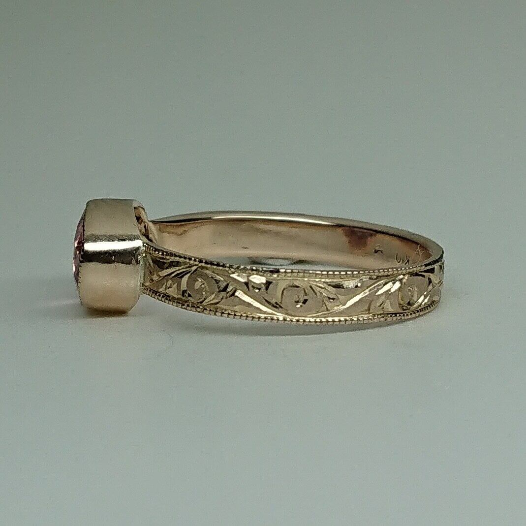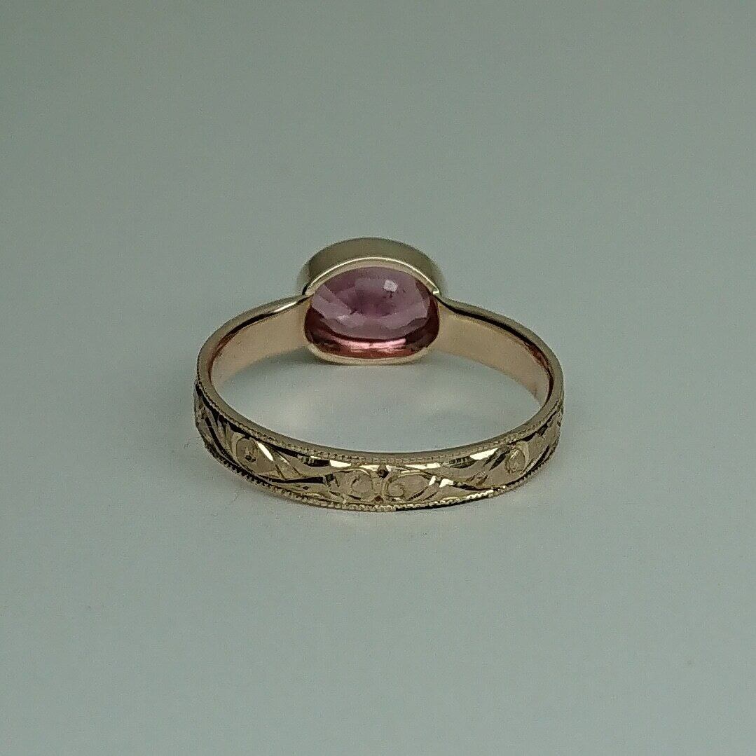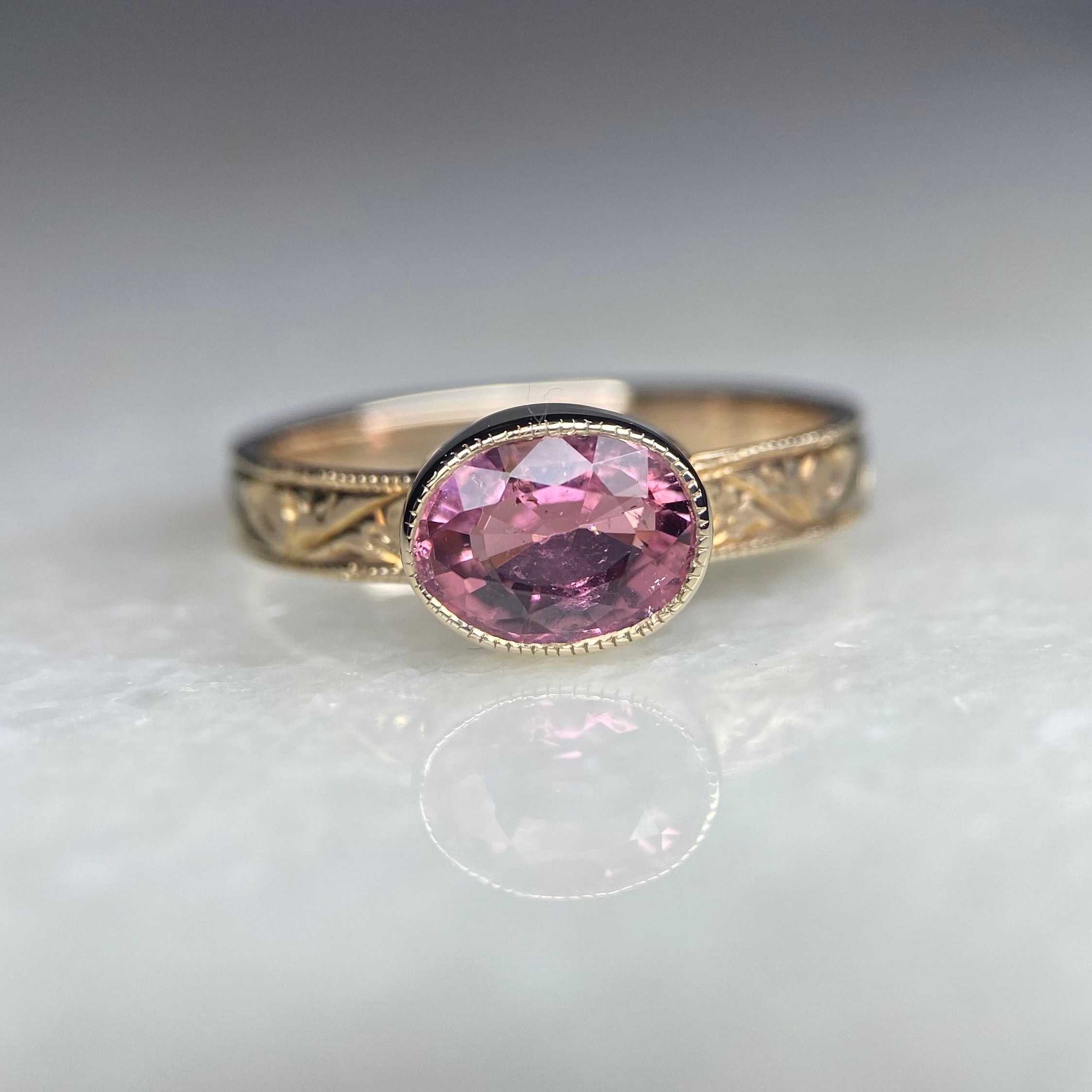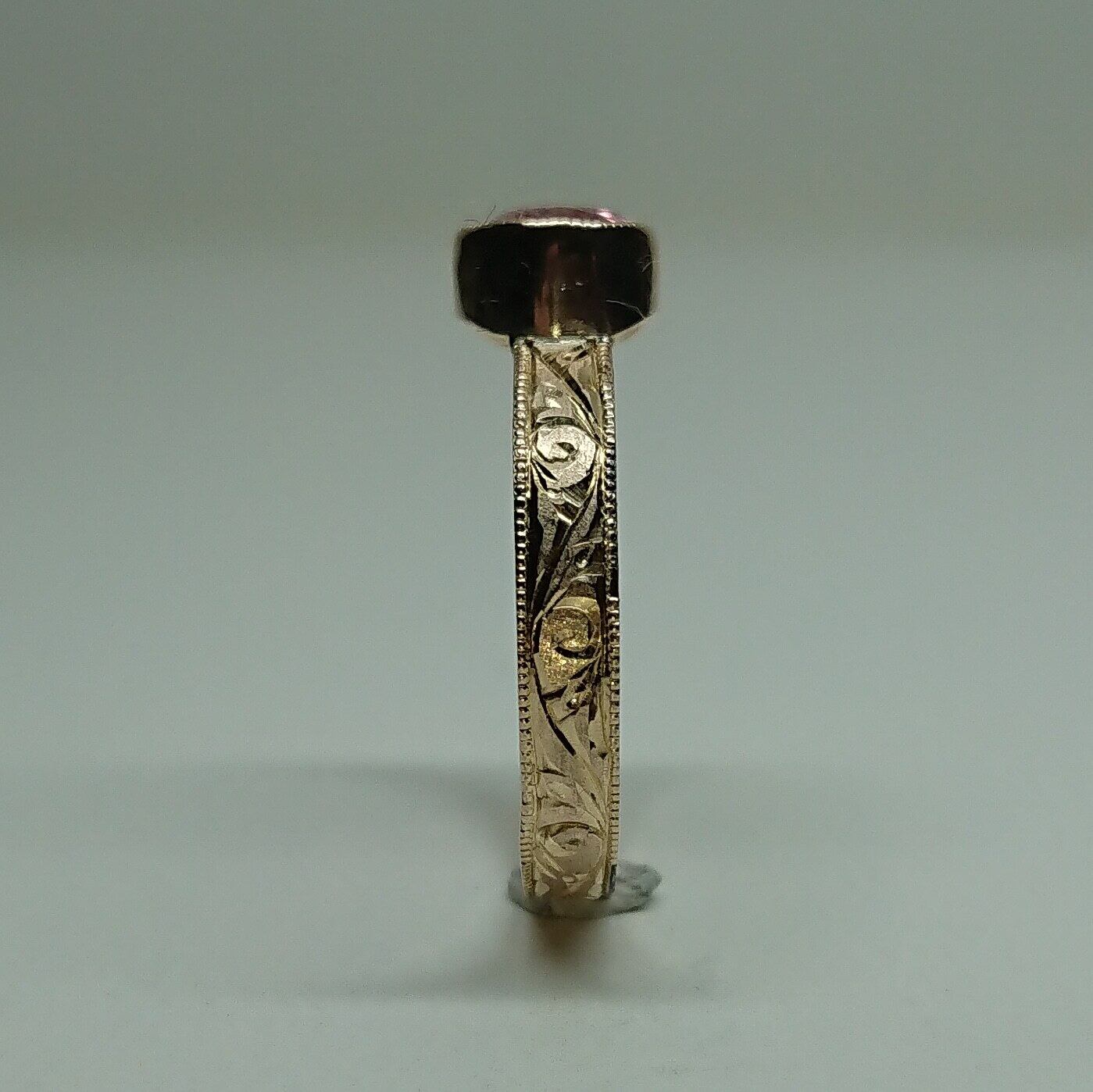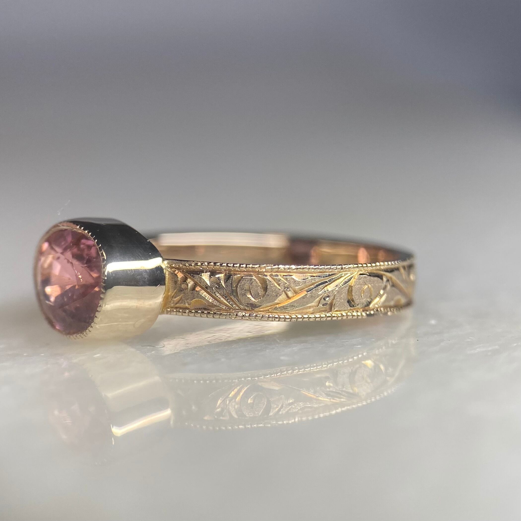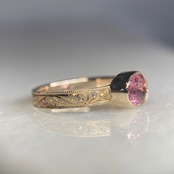 k10リング K10 イエローゴールド 一点もの キラキラ 彫り 和彫り ミル ミル打ち ピンキーリング 唐草 希少石 ピンク ピンクトルマリン トルマリン レアストーン 天然石 一点物