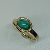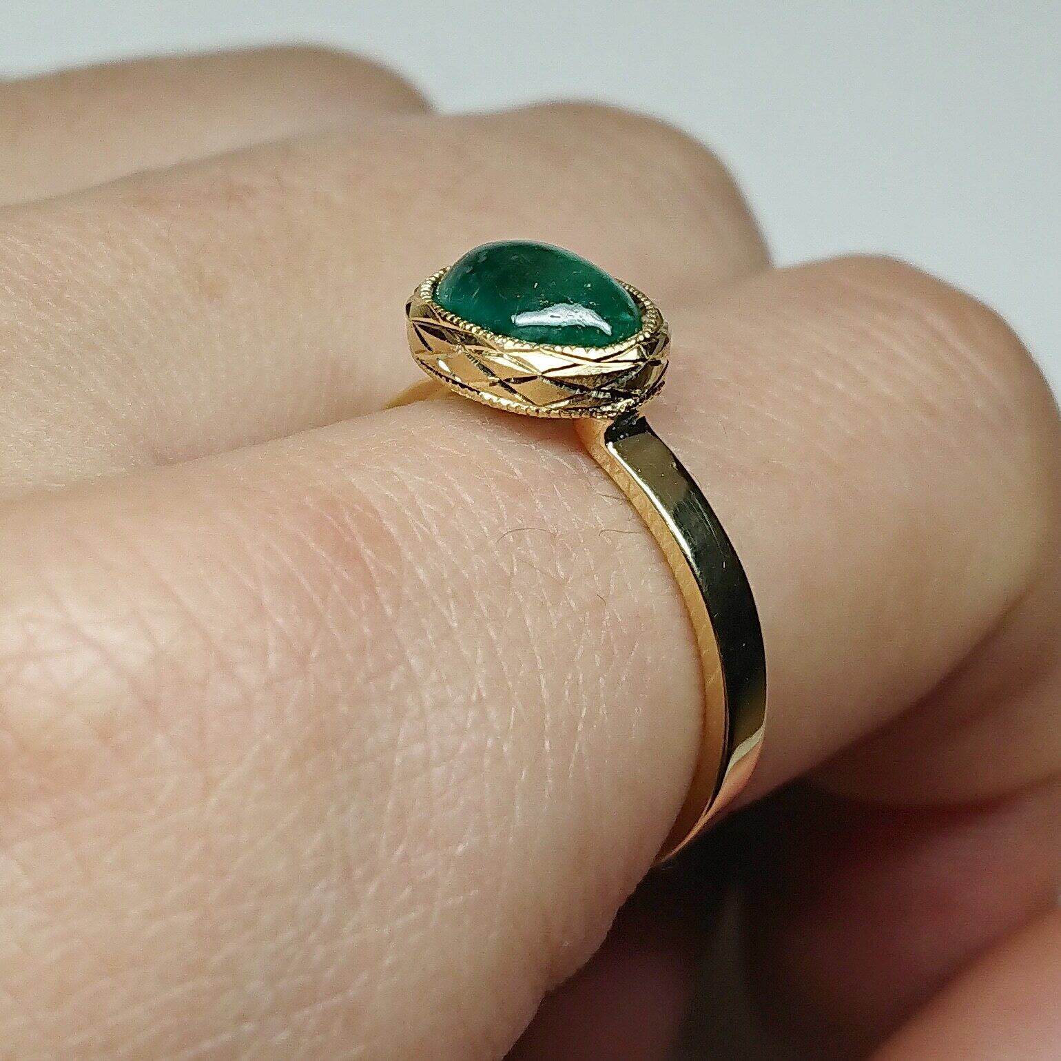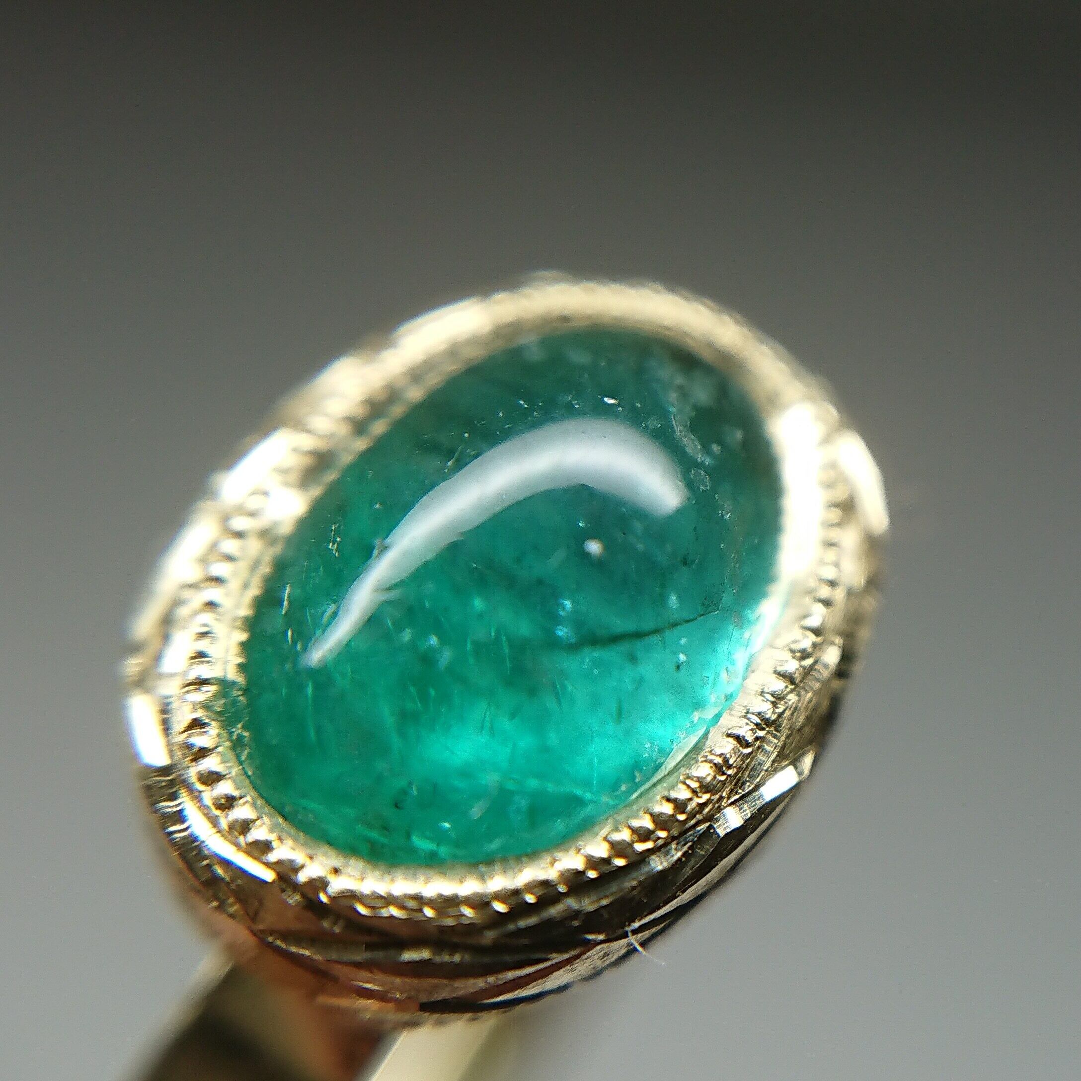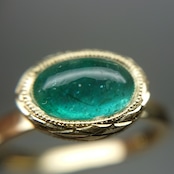 k18 エメラルドカボション スターダスト 彫り リング 一点もの