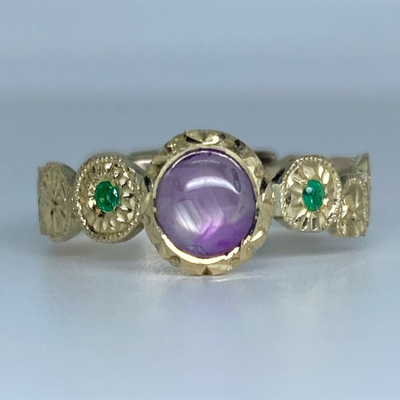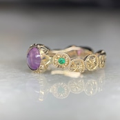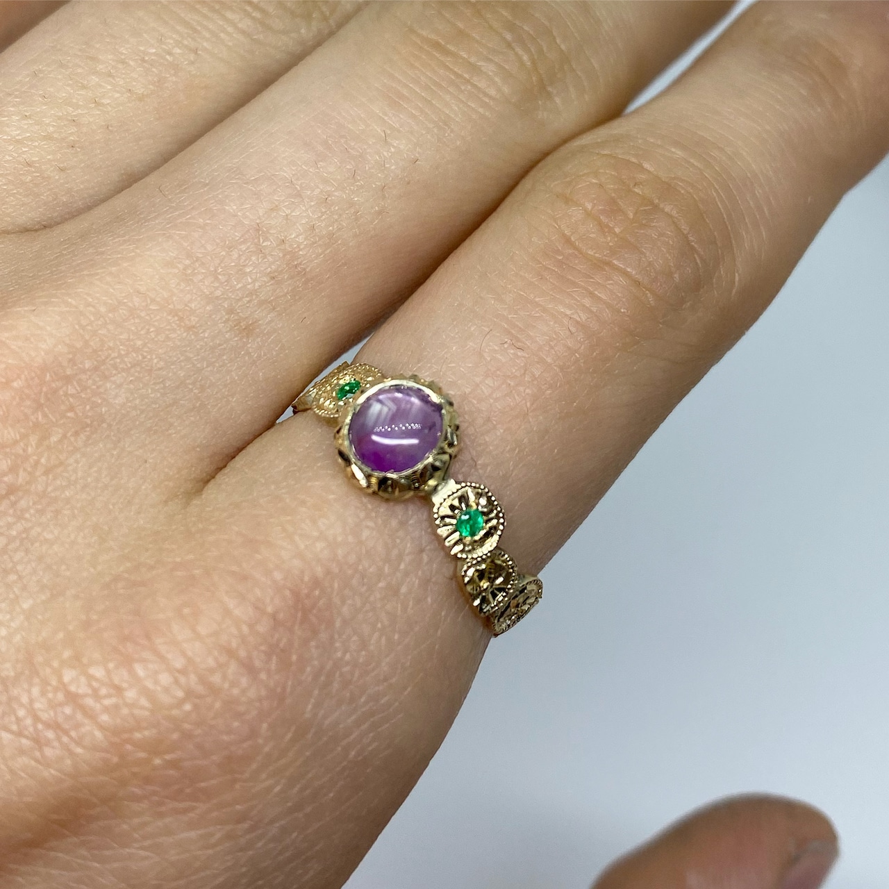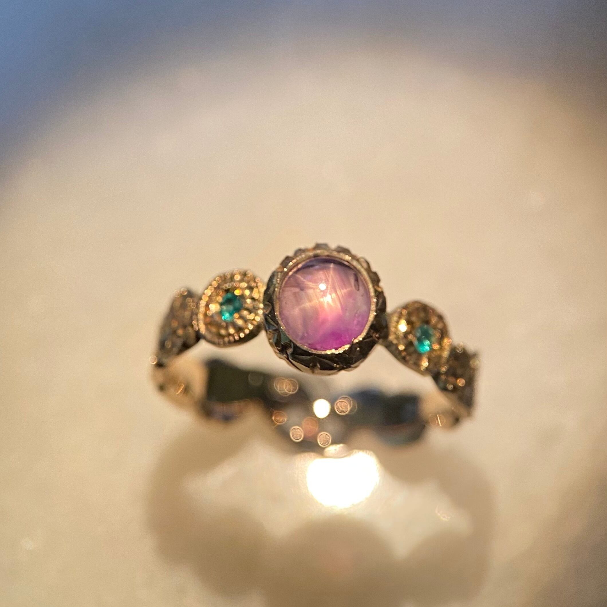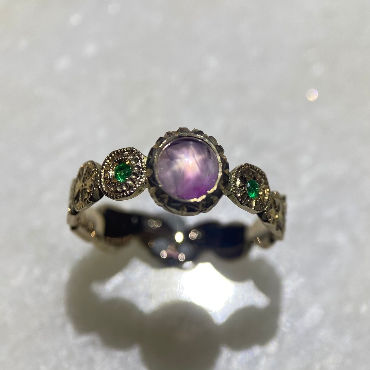 k10 スターサファイア エメラルド 奏シリーズ 和彫り リング 一点もの