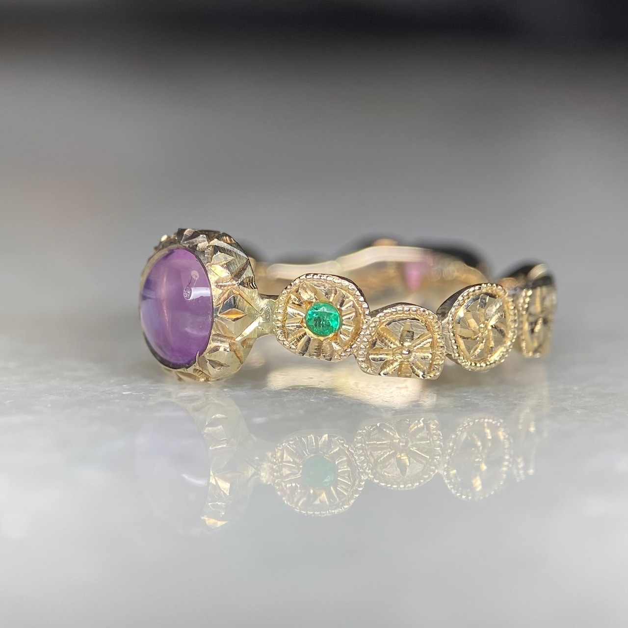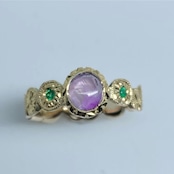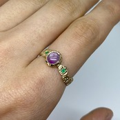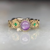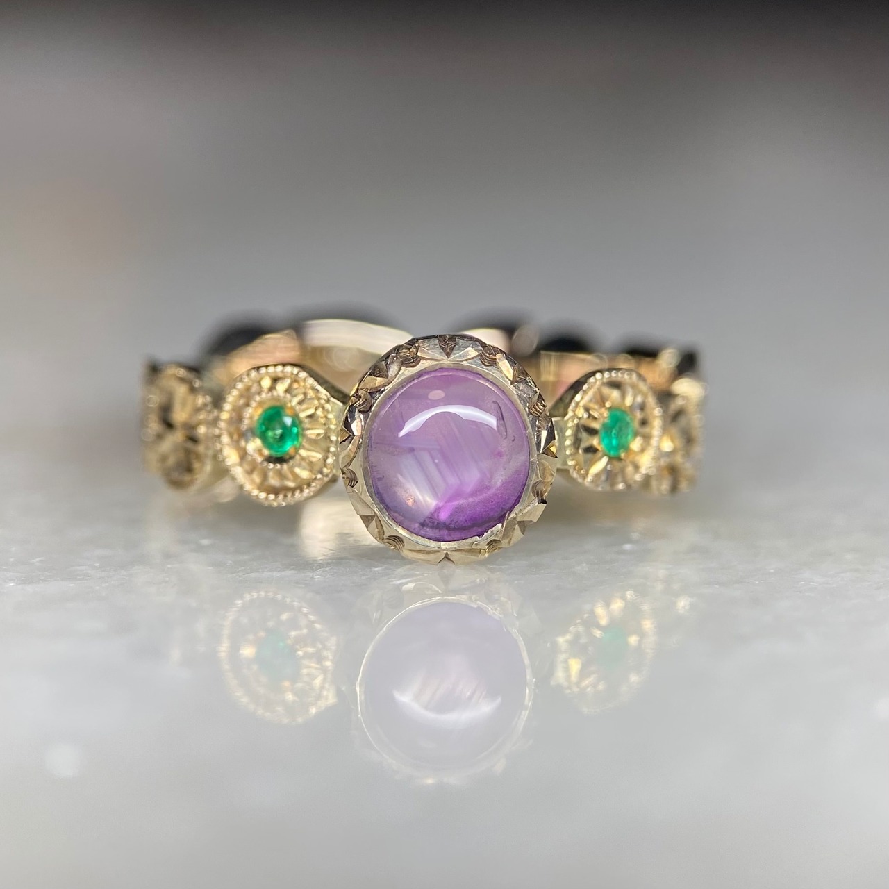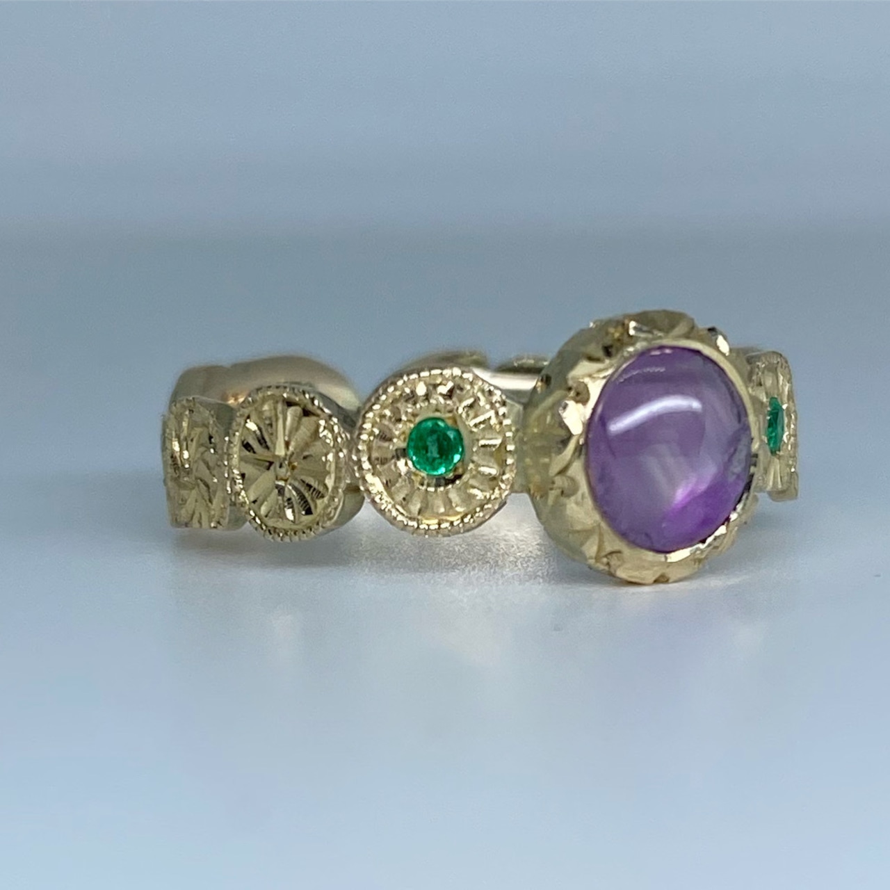 k10 スターサファイア エメラルド 奏シリーズ 和彫り リング 一点もの