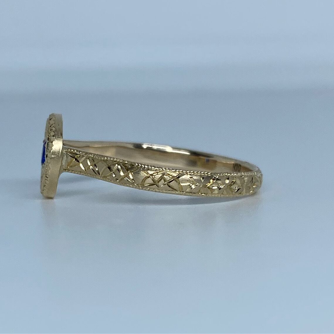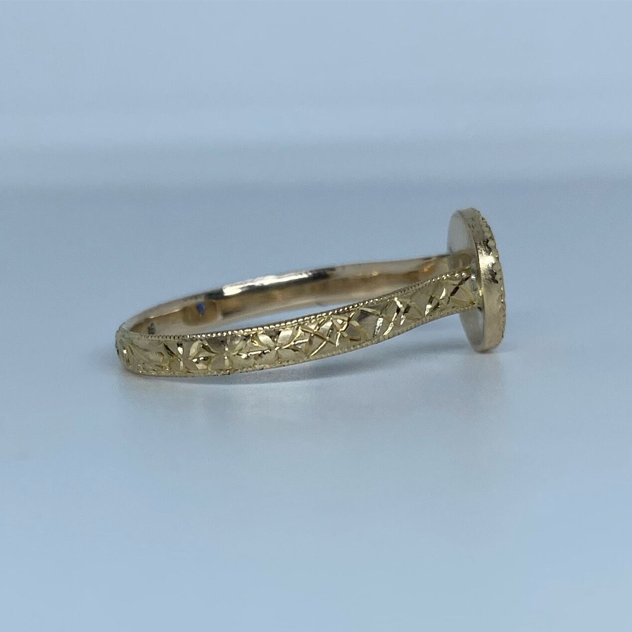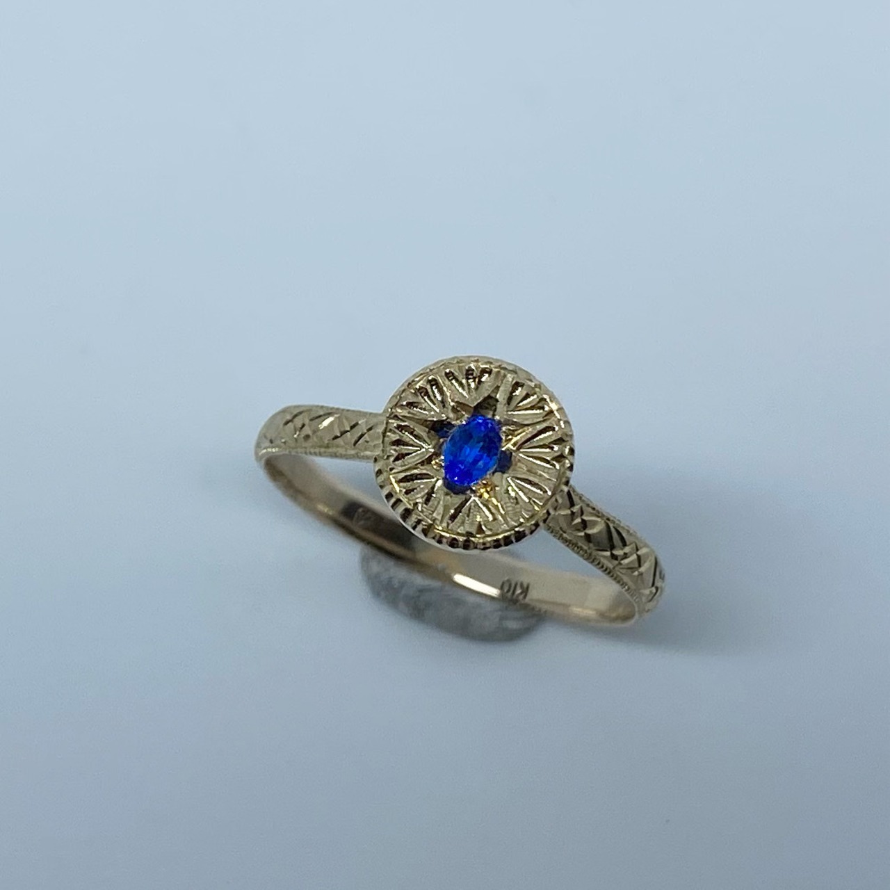 k10リング K10 イエローゴールド 一点もの キラキラ 彫り 和彫り ミル ミル打ち ピンキーリング アウイナイト 波紋 忘れな草 唐草希少石 レアストーン 天然石 一点物