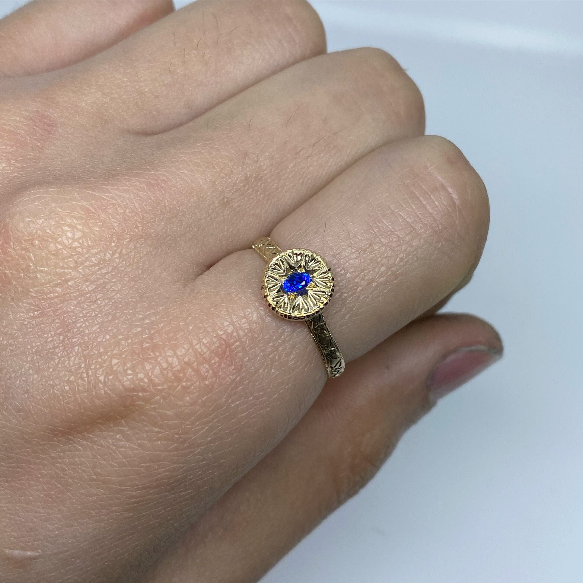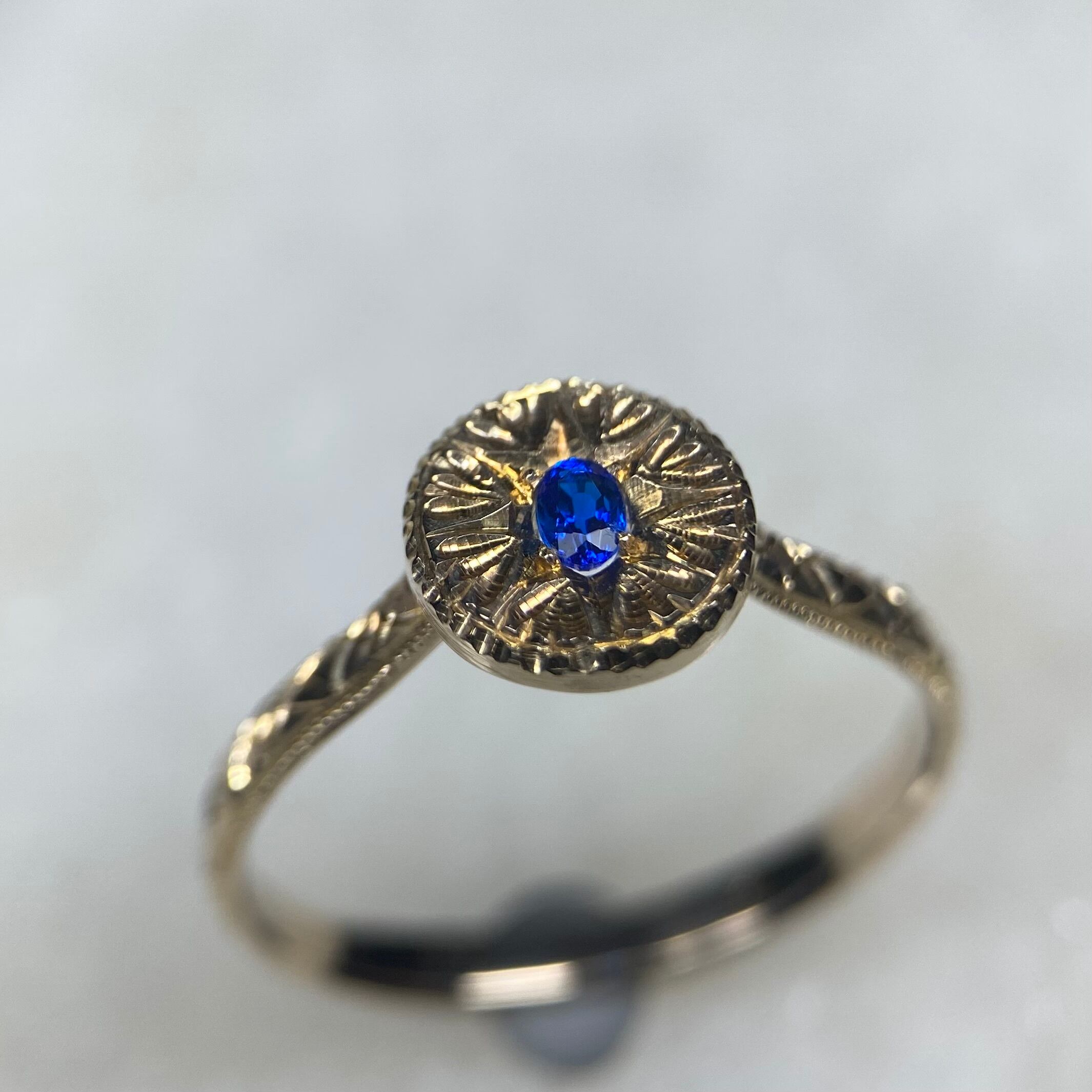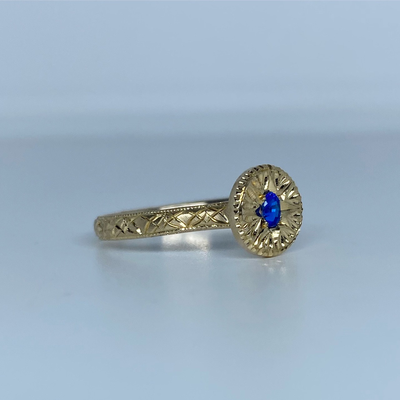 k10リング K10 イエローゴールド 一点もの キラキラ 彫り 和彫り ミル ミル打ち ピンキーリング アウイナイト 波紋 忘れな草 唐草希少石 レアストーン 天然石 一点物