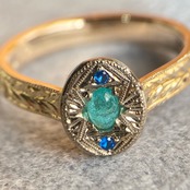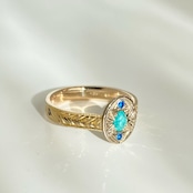 k18WG:k10YGパライバトルマリン:アウイナイト:アレキサンドライト 和彫りリング 一点もの